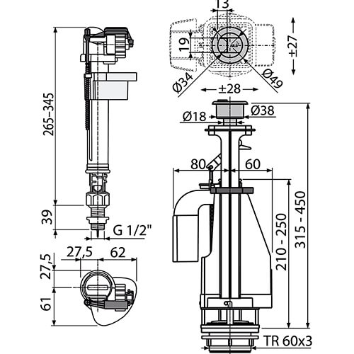 /Арматура для унитаза 1/2 двойной смыв Alcaplast SA08AS